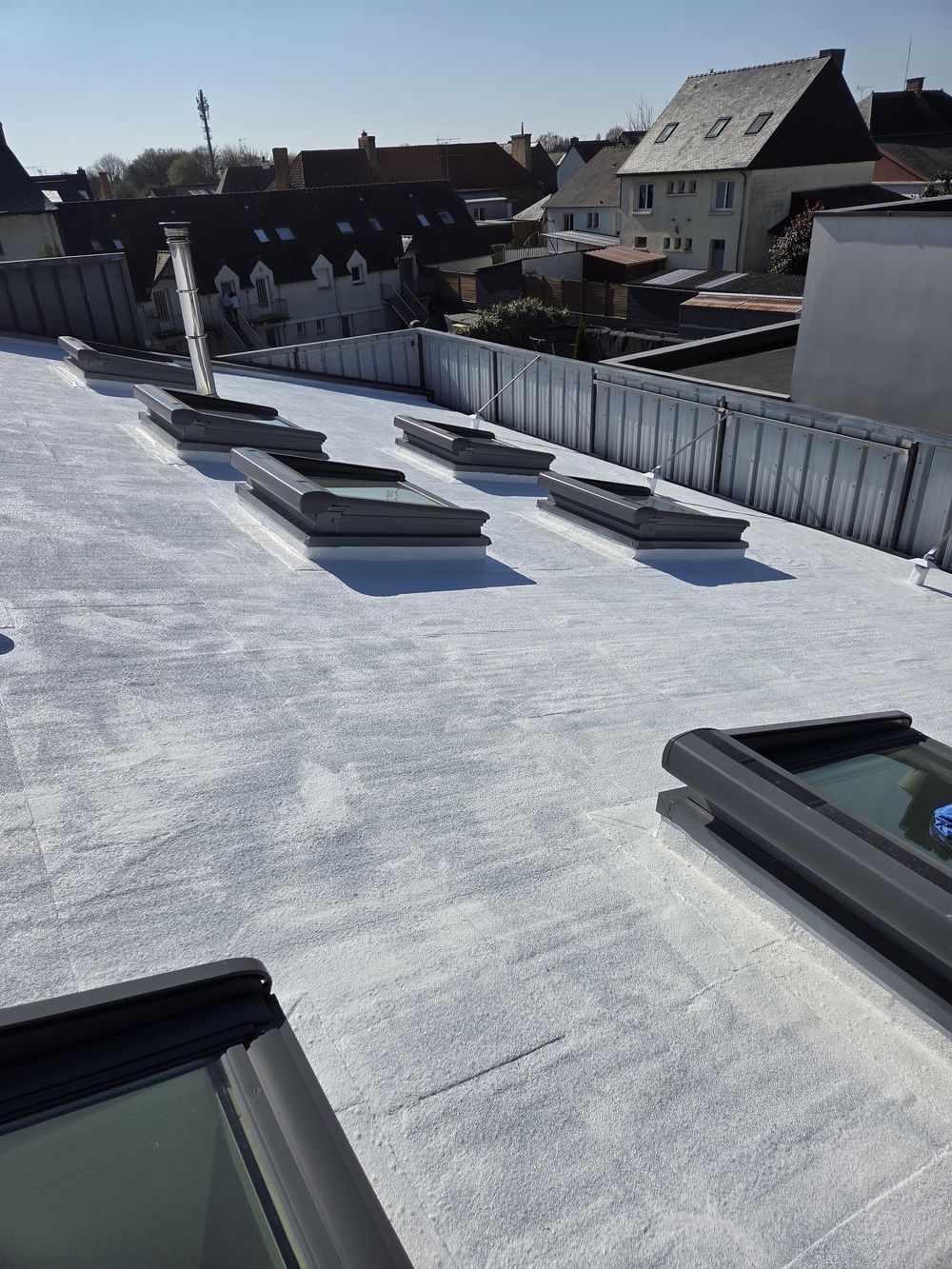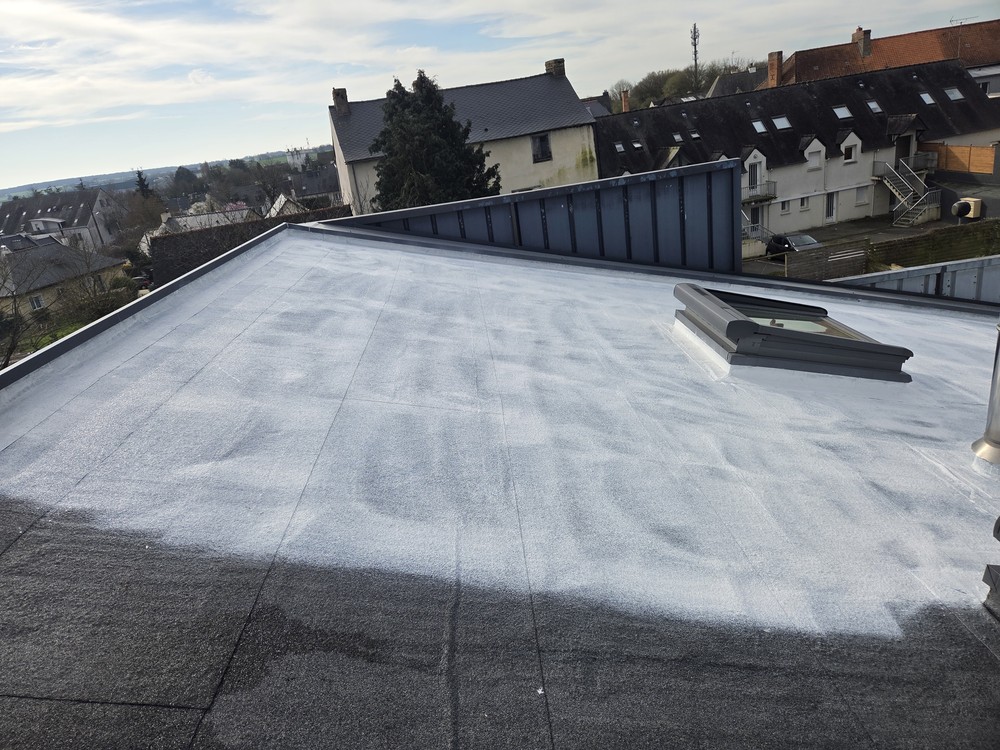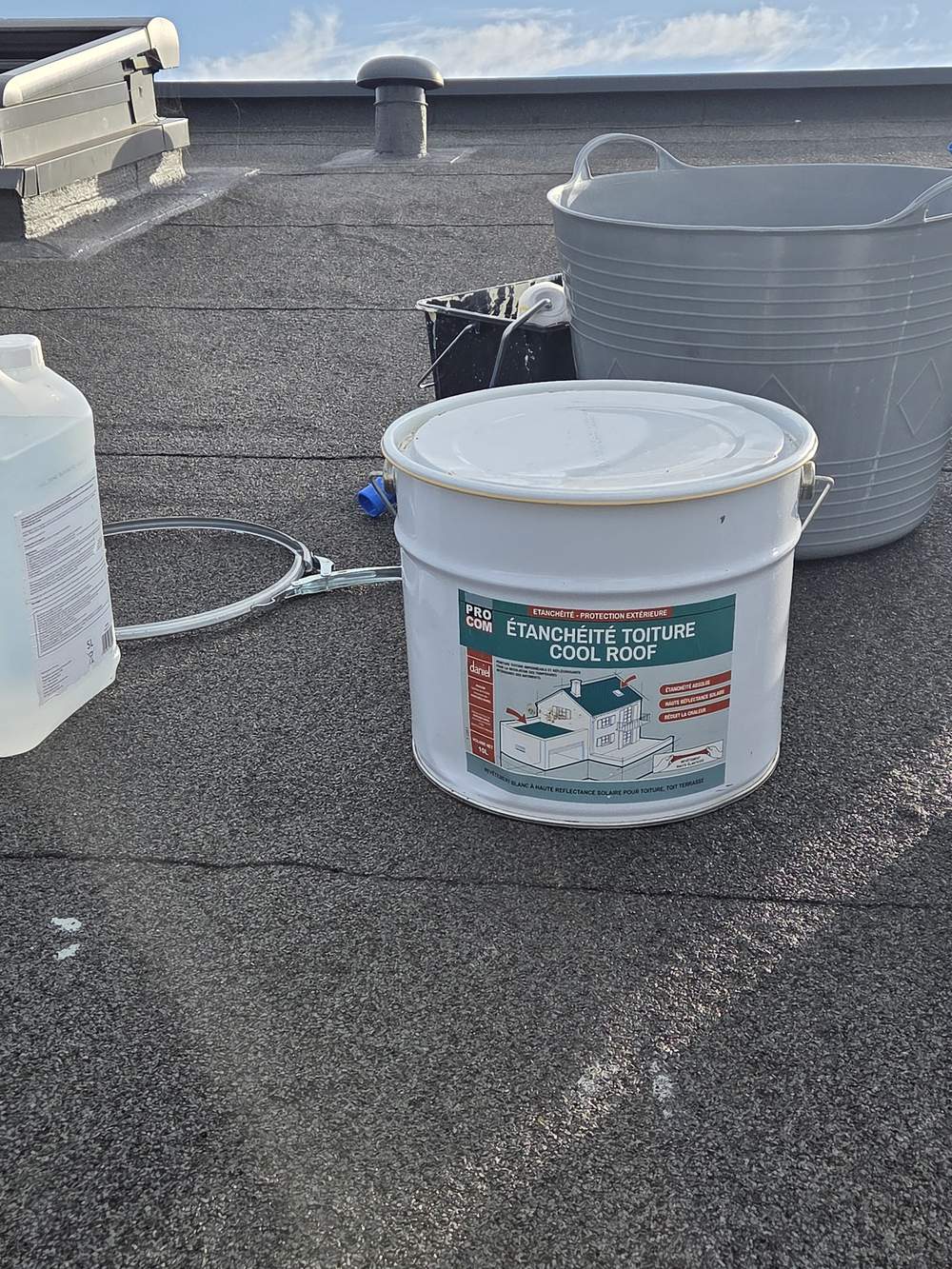 Rénovation d'un toit terrasse nettoyage traitement pose d'une résine spéciale pour les infiltrations d'eau travail garanti