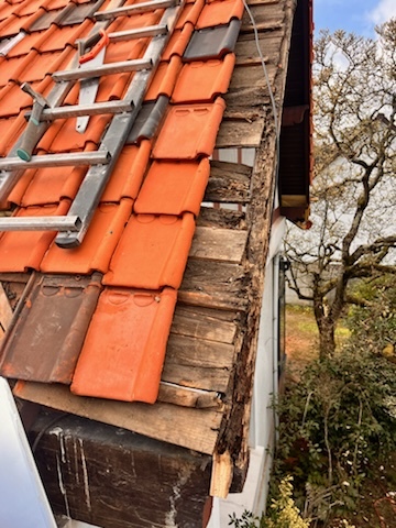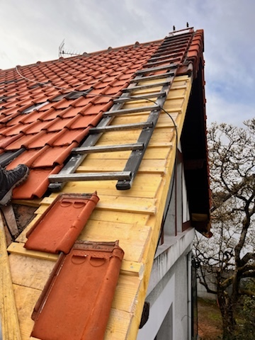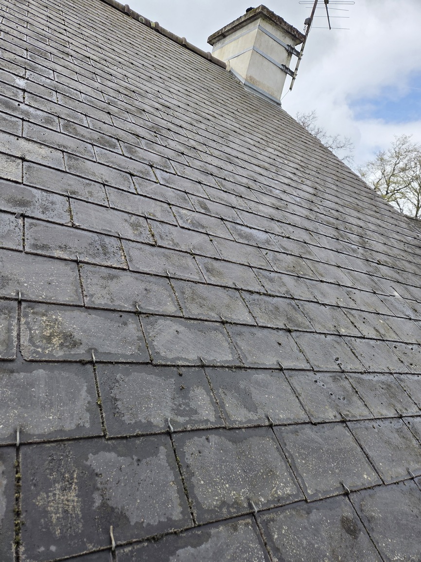 Couvreur à Rennes - Remplacement d'ardoise sur vieille toiture crochet, refixation faîtage